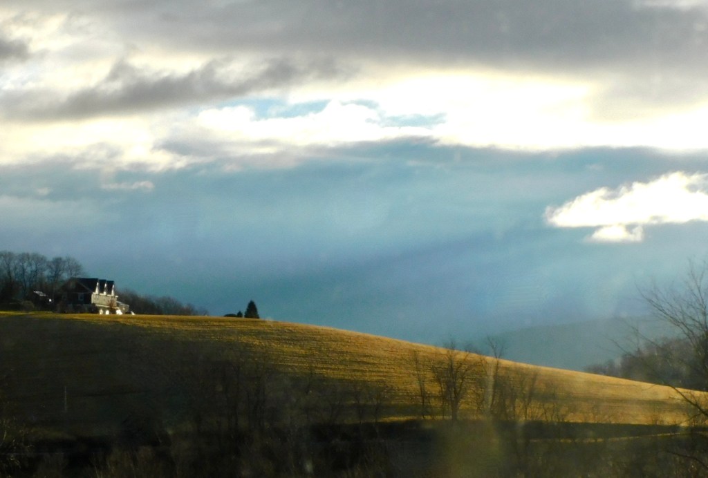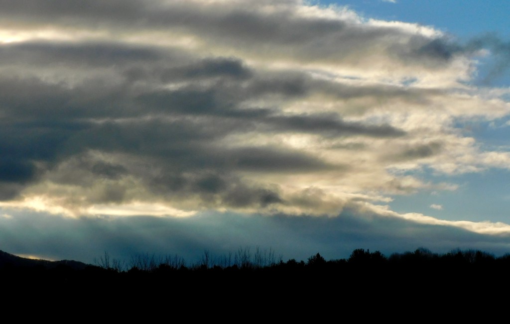 Washing up, I observed the "cleft" whence our weather often emerges.