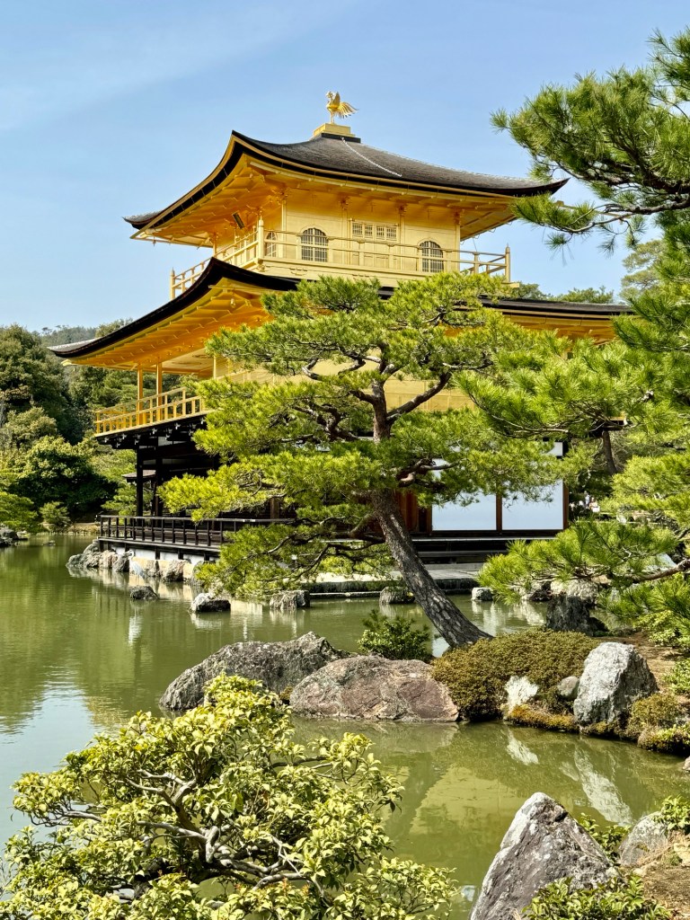 We then jumped into a cab and traveled to the NW corner of the city and Kinkaku-ji, known as the Golden Pavilion. In 1397 it was built as a palace that was at the center of politics and influence. When the Shogun passed away, he gave instructions for it to become a Temple. Now a Zen Buddhist Temple, the gold leaf on the top two floors has been restored and is cleaned daily.